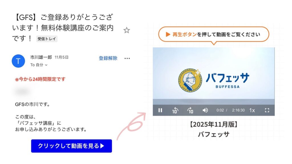 動画の視聴が完了すると、登録したメールアドレスにLINE追加のURLが送られてくるよ📩