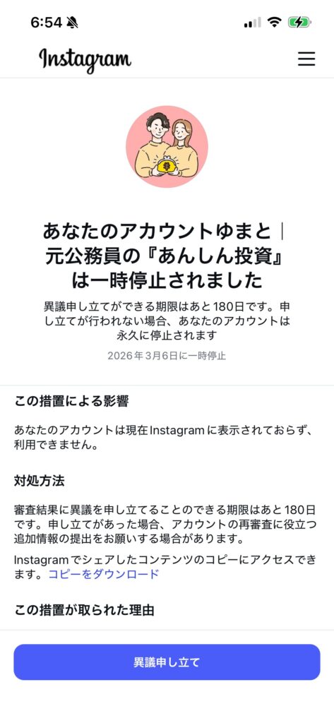2026年3月6日、2個目のインスタアカウントが消されてしまいました😭
