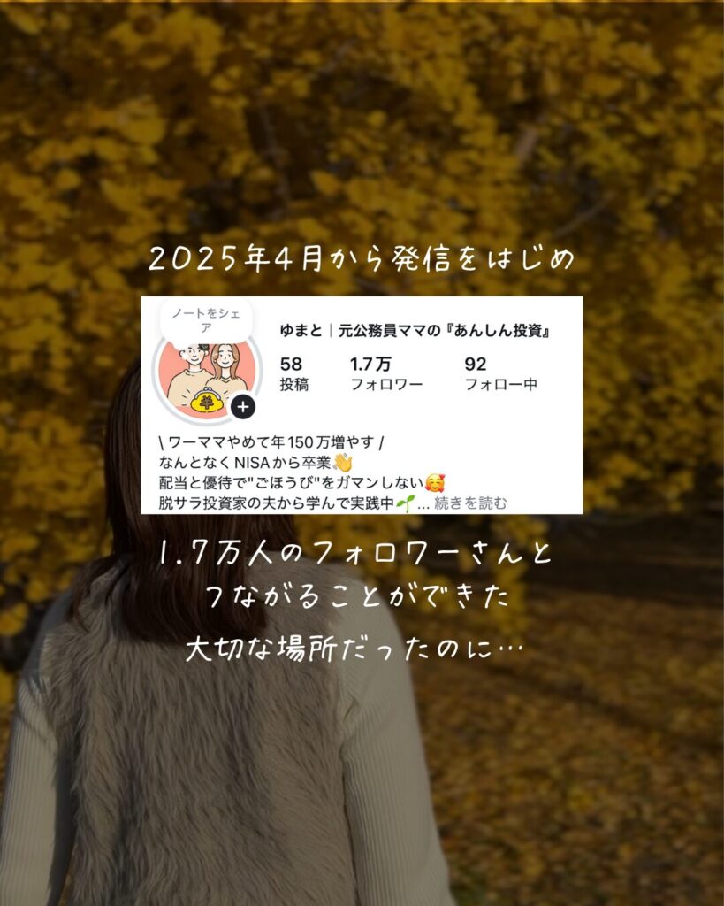 実は、2025年12月に1個目のアカウントが消えたばかりだったのです。