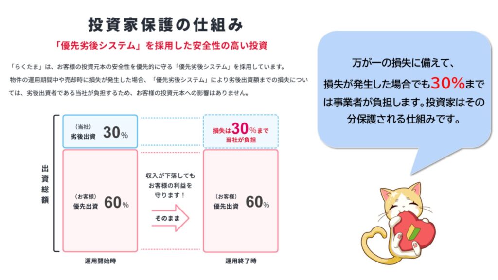 - 投資家を守る仕組み(優先劣後構造・運営の透明性)